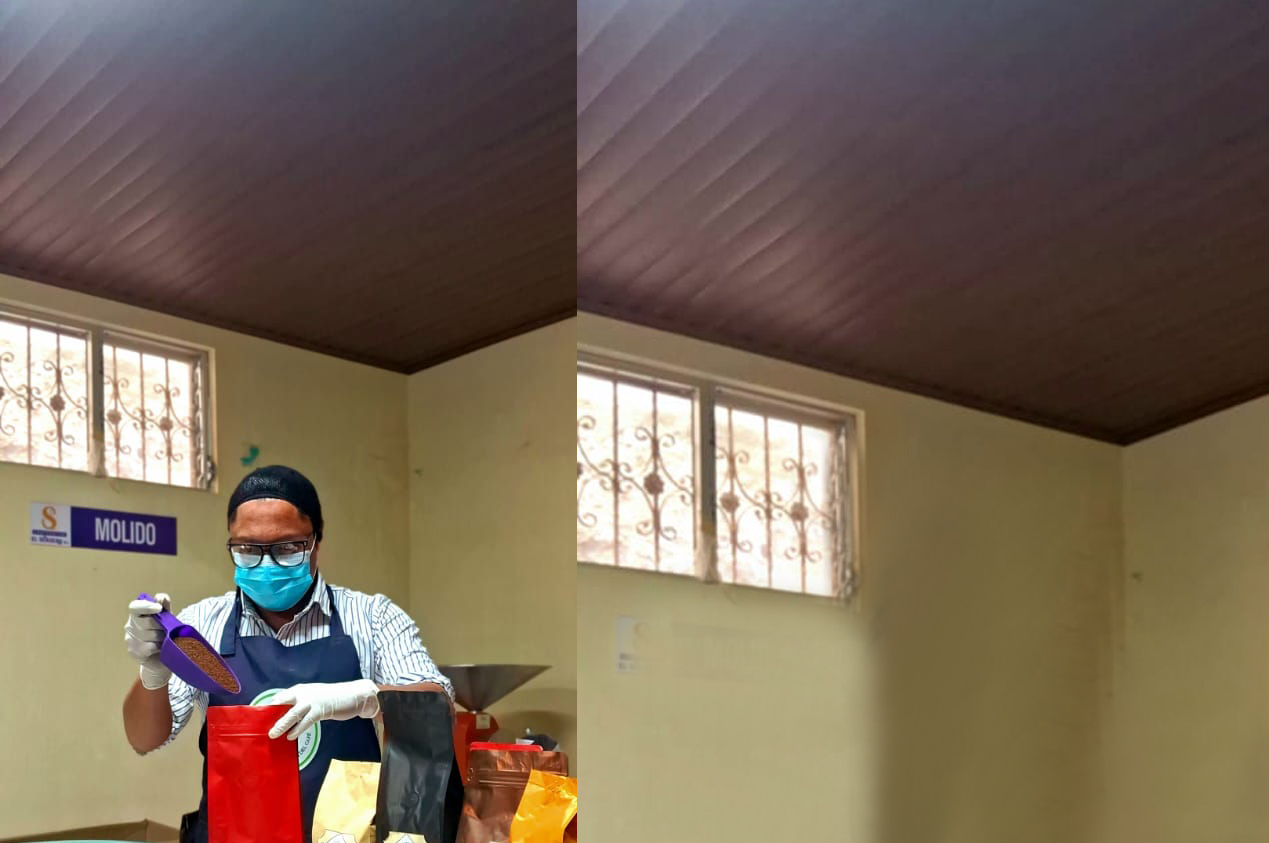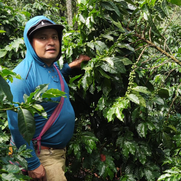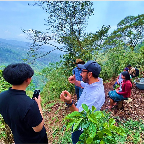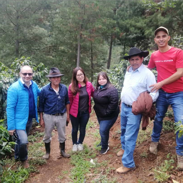 visita de campo en área cafetalera del productor, mostrando como es el procesamiento del café durante la cosecha al extranjero de Japón