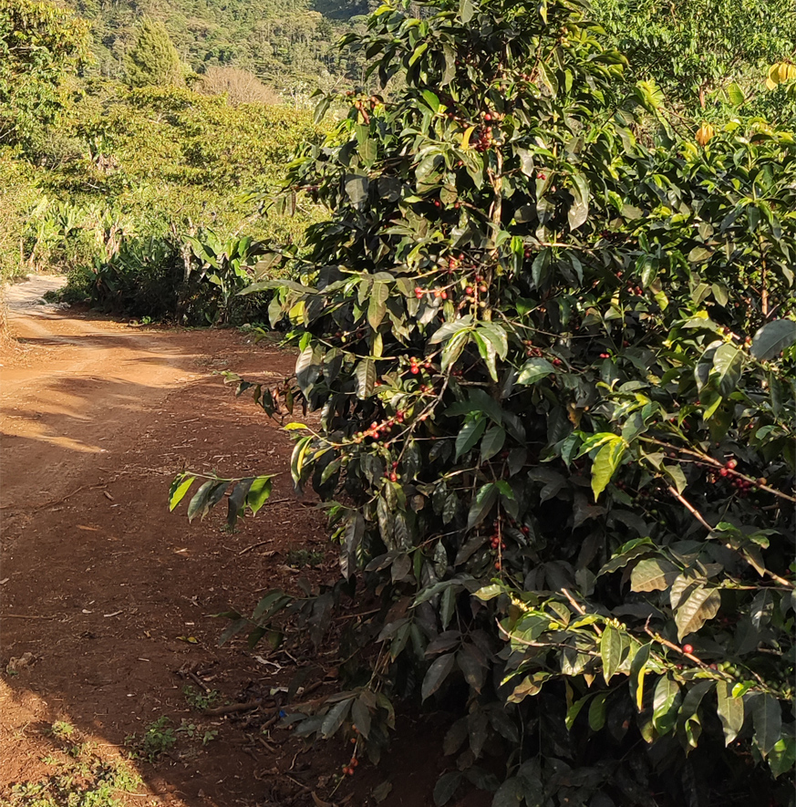 visita de campo en área cafetalera del productor, mostrando como es el procesamiento del café durante la cosecha al extranjero de Japón